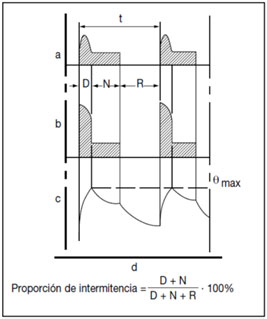 Funcionamiento con carga intermitente. Los ciclos de trabajo son de 10 minutos salvo indicaciones diferentes. La duración del tiempo de trabajo está indicada con un porcentaje: 15, 25, 40 i 60%.